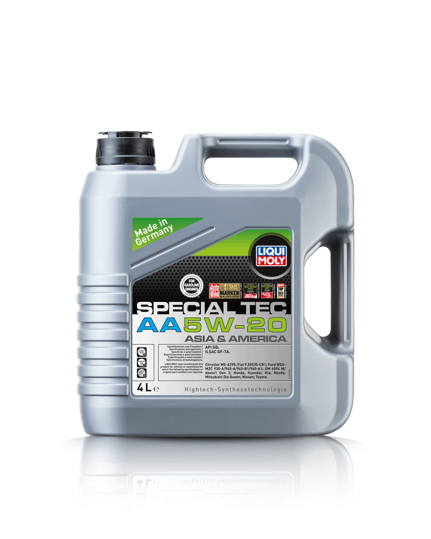 LIQUI MOLY SPECIAL TEC AA 5W20 es un aceite de motor antifricción moderno de máxima categoría especialmente desarrollado para el uso durante todo el año en vehículos asiáticos y americanos. La combinación de aceites básicos no convencionales según la tecnología sintética y los últimos aditivos garantiza un aceite del motor que protege de forma excelente contra el desgaste, disminuye el consumo de combustible y de aceite, mantiene limpio el motor y le proporciona una rápida lubricación.